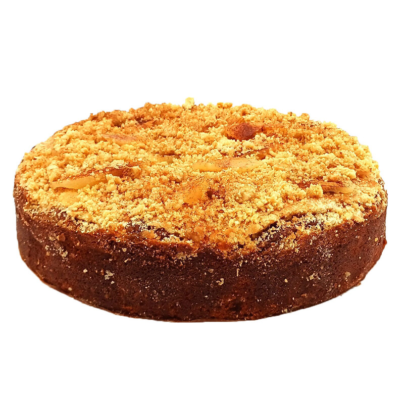 Our Apple Crumble is such a classic and traditional cake! Tasty fresh apples mIxed with our light vanilla sponge infused with cinammon decorated with a buttery toasted crumble topping, make it a heartwarming delicious tea cake, perfect hot or cold, with ice cream or custard!