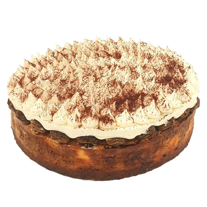 Our Boozy Tiramisu Cheesecake is a wonderful dessert cake - rich and luxurious! Cream cheese infused with mascarpone & gound coffee sitting on a base of 'Savoairdi' biscuits soaked in espresso and Kalua coffee liqueur, finished with chocolate dusting....